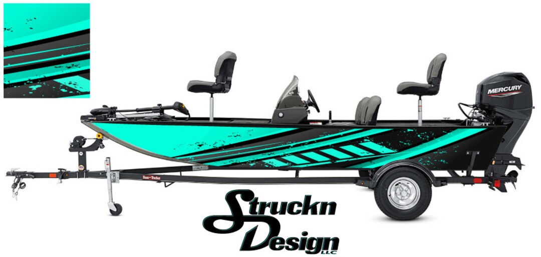 Bass Fishing Fish Boat Aqua Teal Black Modern Stream Grunge Etsy Uk