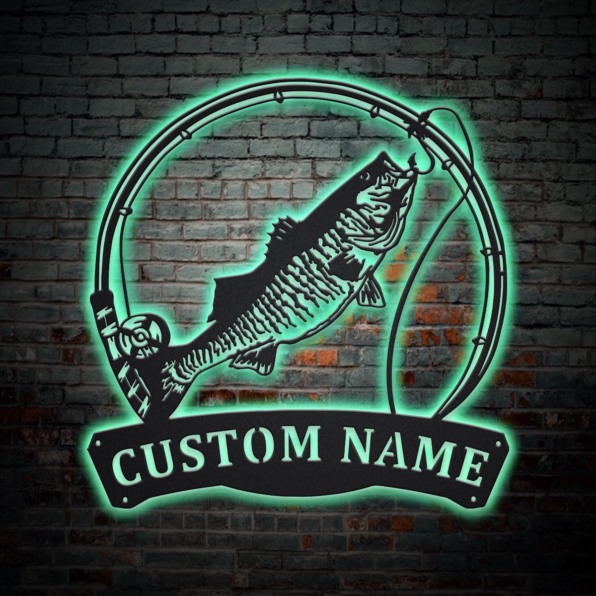 Custom Striped Bass Fish Pole Metal Sign With Led Lights Etsy Uk
